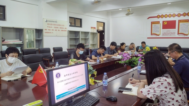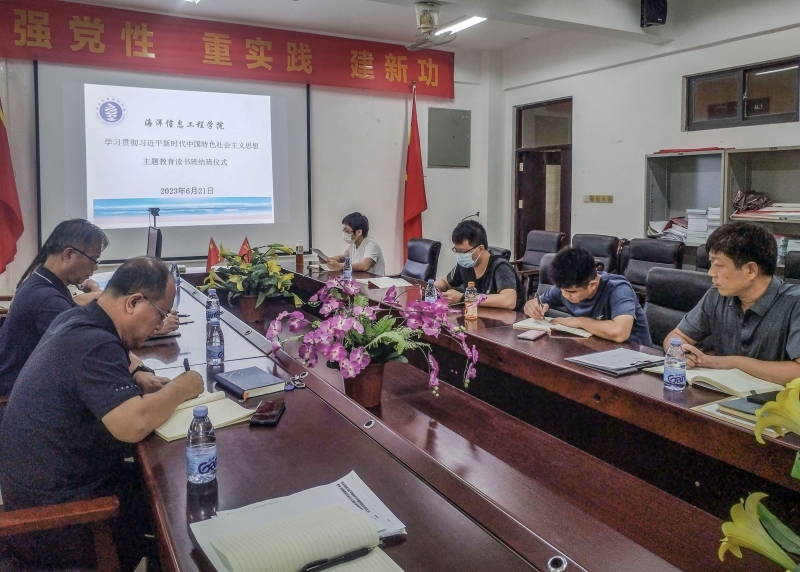 6月21日上午,海洋yl7703永利集团党总支举办了学习贯彻习近平新时代中国特色社会主义思想主题教育读书班结班仪式,学院党总支书记郑泽龙主持,学院班子成员和教工党员参加了仪式。