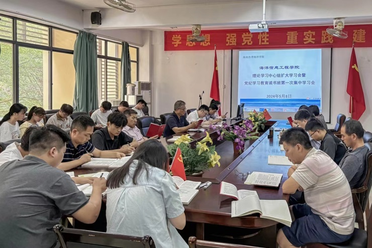 5月8日下午,海洋yl7703永利集团党总支召开学院理论学习中心组扩大学习会暨党纪学习教育读书班第一次集中学习会,集中学习《中国共产党纪律处分条例》。学院党政班子成员、各支部党员参加学习,院党总支书记郑泽龙主持会议。