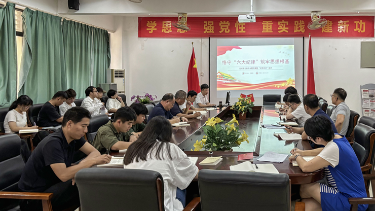 会议根据“学院2024年纪检监察工作要点”相关要求,将每月说纪工作与党纪学习教育工作相结合,刘世杰以“恪守‘六大纪律’,筑牢思想根基”为题开展说纪活动,带领大家集中学习了党的“六大纪律”,即政治纪律、组织纪律、廉洁纪律、群众纪律、工作纪律、生活纪律,通过融入典型案例和学院工作实际,使大家对《条例》有了更加深刻的认识。