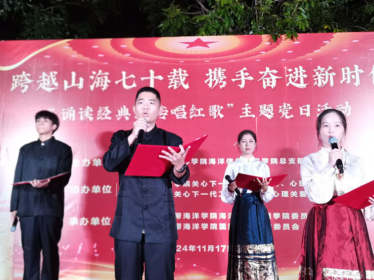 为深入学习贯彻党的二十届三中全会精神,庆祝新中国成立75周年,迎接学校70华诞,增强全体师生的家国情怀,坚定理想信念,推动学院思想政治教育和教风学风建设工作再上新台阶,2024年11月17日,海洋yl7703永利集团党总支组织开展“跨越山海七十载,携手奋进新时代——诵读经典、传唱红歌”主题党日活动。