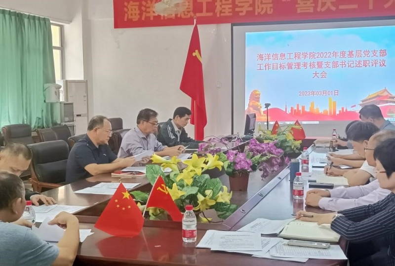 为深入贯彻落实习近平新时代中国特色社会主义思想和党的二十大精神,认真贯彻上级有关工作要求,提升基层党组织政治功能,促进支部战斗堡垒作用的充分发挥。3月1日,海洋yl7703永利集团党总支召开了基层党支部工作目标管理考核暨支部书记述职大会。学院党总支委员、教工支部和学生支部的多数党员及部分师生群众代表参加了会议,会议分别由学院党总支书记郑泽龙和副书记曾令伟主持。