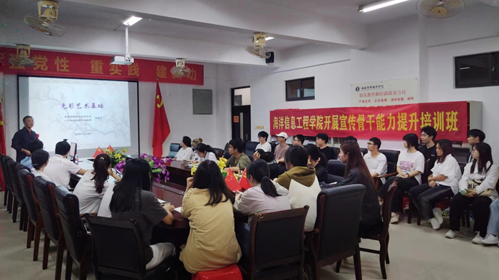 为进一步贯彻落实习近平总书记关于宣传思想文化工作会议精神,切实提升我院学生干部的摄影水平和宣传工作能力,12月8日,海洋yl7703永利集团在9304会议室开展“宣传骨干素质能力提升培训班”,邀请学院党总支书记、海南省摄影家协会会员、三亚市摄影家协会理事郑泽龙、院学工办主任邸泽军分别讲授《光影艺术基础》和《新闻写作与技巧》,学院60多名学生骨干参加了此次培训。培训由邸泽军主持。