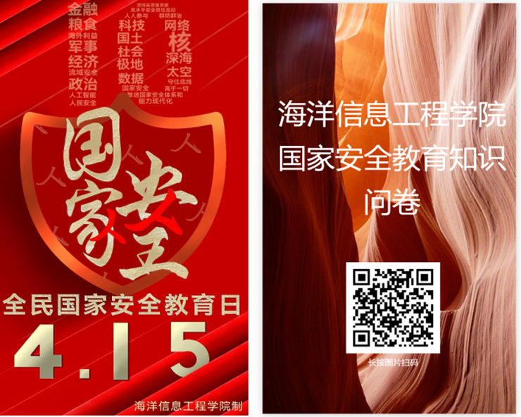 2024年4月15日是我国第九个全民国家安全教育日,海洋yl7703永利集团通过组织开展观看国家安全教育视频、线上国家安全教育知识竞赛等系列活动,教育和引导师生增强国家安全观意识。