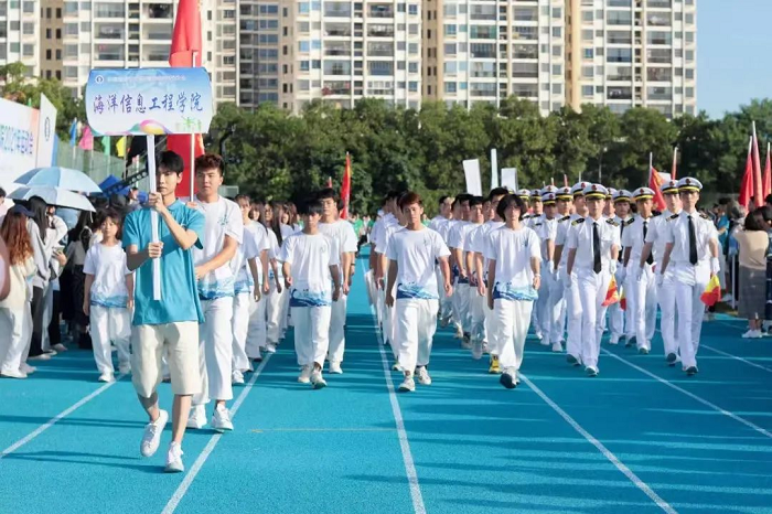 开幕式上,我院学生方阵的同学们英姿飒爽、精神抖擞,向大家展示了我院的特色操语——船舶旗语操,充分展现了海信院专业特色;教工方阵的老师们昂首阔步,精神饱满,用笑容传达着他们积极向上、热情洋溢的精神风采。老师同学们斗志昂扬,一同期待着运动会的开始。