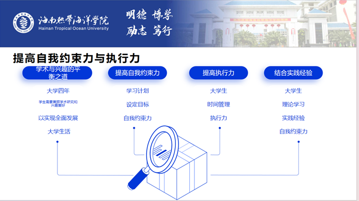 为更好的帮助2023级学生适应大学学习和生活环境,引导他们尽早树立目标。10月24日,海洋yl7703永利集团邀请2023级电子信息硕士研究生任浩同学在4201教室作了一场《如何合理度过大学四年》为主题的经验交流分享会,2023级电子信息科学与技术专业全体同学参加,学工办邸泽军老师主持。