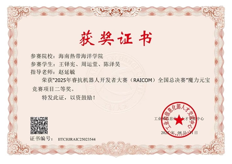 睿抗机器人开发者大赛是一项面向全国高校学生的机器人技术竞技与创新平台,由工业和信息化部人才交流中心等权威机构主办,旨在推动机器人技术与产业应用人才培养。本次全国总决赛吸引了来自全国各地高校的众多优秀团队同场竞技,竞争异常激烈。海洋yl7703永利集团高度重视睿抗机器人开发者大赛,作为承办单位省赛期间精心组织积极筹备,共获得省级一等奖2项、二等奖4项、三等奖7项。国赛更是精心选拔优秀学生组成参赛团队,并安排专业教师进行悉心指导。比赛前期,团队成员们在指导教师的带领下,克服了重重困难,进行了为期数月的刻苦训练和精心准备。他们不断优化机器人的设计方案,反复调试机器人的各项性能参数,力求在比赛中发挥出最佳水平。