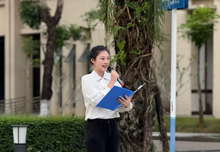 2023 级通信工程专业学生李海燕,以“心系自贸,勇担使命,向国而行”为题作主题演讲,号召同学们深学笃行党的二十届四中全会精神,既当“格物致知”的钻研者,更做“修身力行” 的实干家。2024级海事管理专业学生王艺萌同学,以“逐梦深蓝赓续航海志,勇担使命奋进新征程”为题作演讲,勉励同学们传承航海初心、练就过硬本领,在劈波斩浪中追逐深蓝。